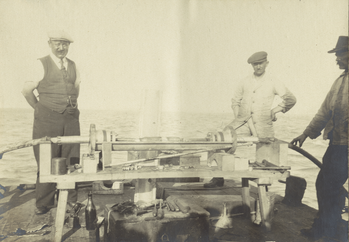 Kabeldragning Kämpinge - Zarrenzin, september 1921. Själva skarven klar. Ur albumet Telegrafverkets Sjökabelarbeten 1919-1921.