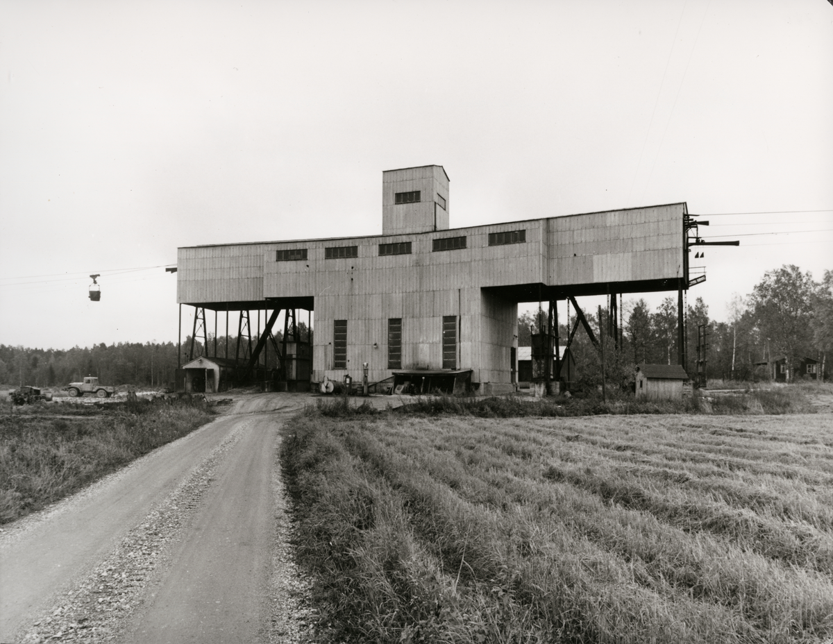 Titel: Skånska Cementverkens linbana i Köping. Längd: 41170 m. Kapacitet: 90 ton kalksten per timme. Linbanan började användas 1939. Ur album: Nordströms: AB Nordströms Linbanor Stockholm, Sweden.