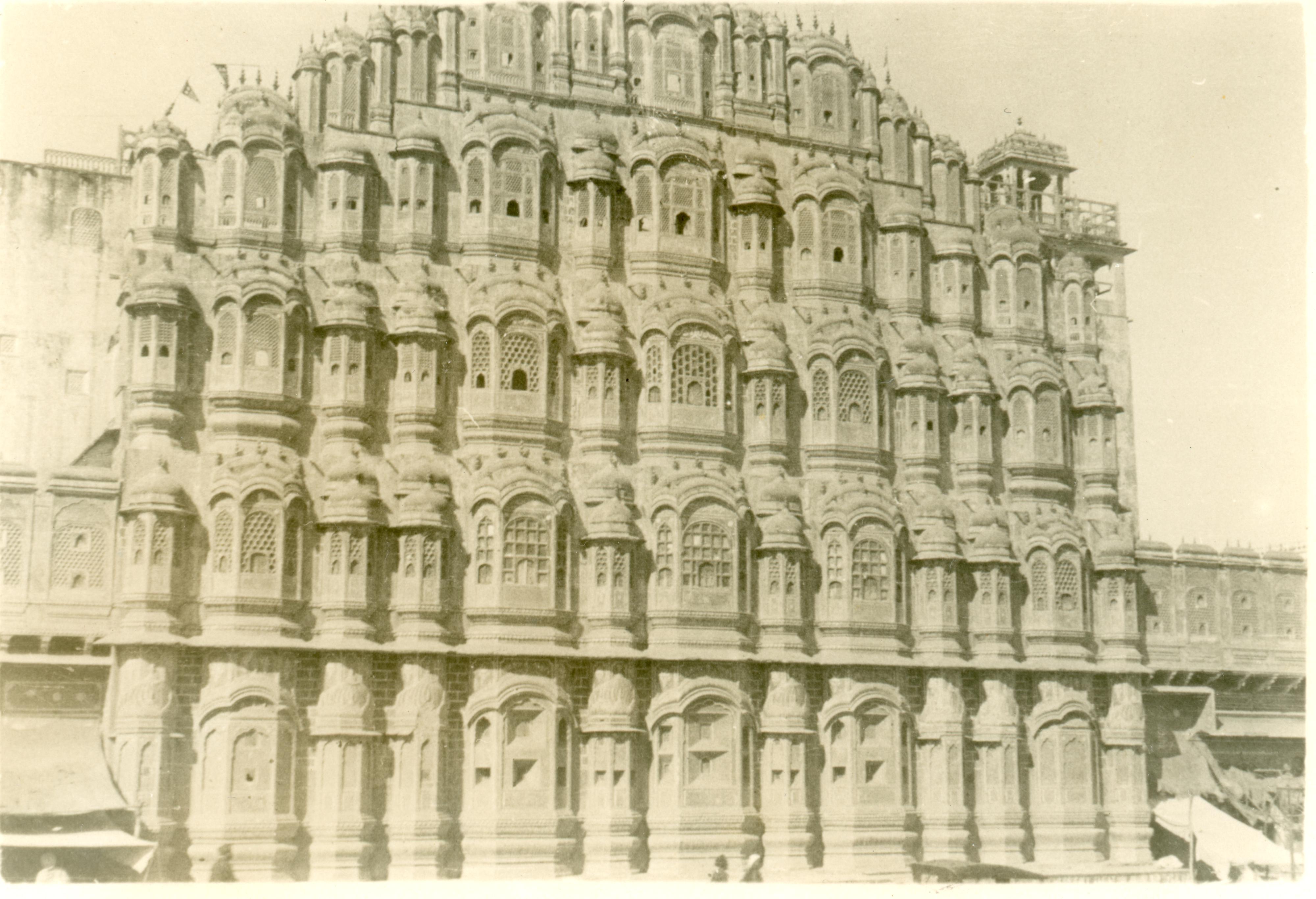 Exteriör, östra fasaden till Vindarnas palats från 1799, The Palace of Winds eller Hawa Mahal i Jaipur.