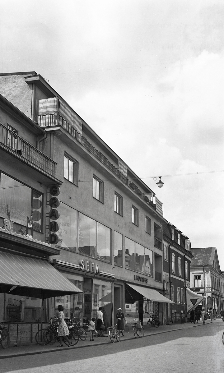 Till vänster ser man butikerna Grand, SEFA och Lindgrens.