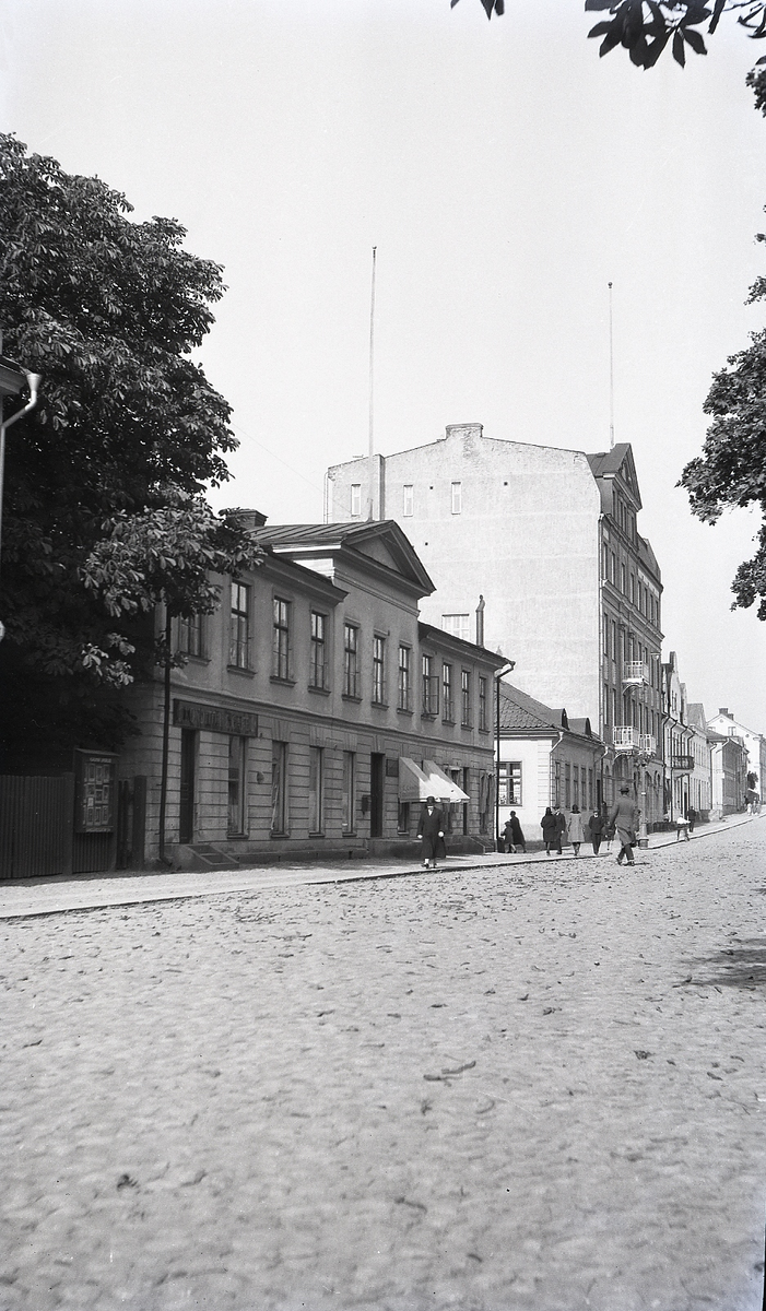 Sparbanksfastigheten på Kungsgatan, kv. Sunaman, innan nybyggnation, följd av bla Frimurarnas fastighet i kvarteret Vinaman, ca 1927.