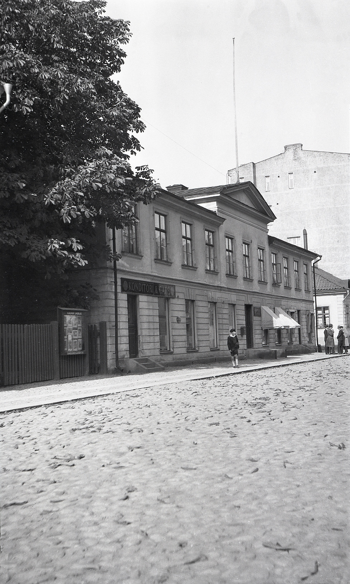 Blivande sparbanksfastigheten på Kungsgatan, kv. Sunaman, innan nybyggnation. Man ser också gaveln till Frimurarnas fastighet i kvarteret Vinaman.