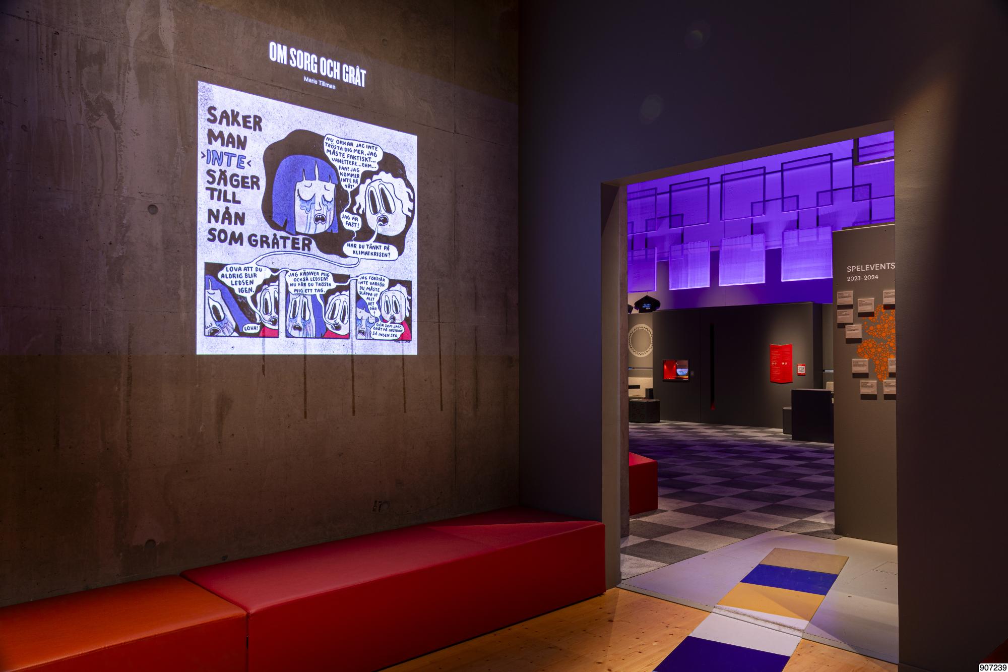 Beskrivning: Interiörbilder från utställningen Existens på Världskulturmuseet, hösten 2025