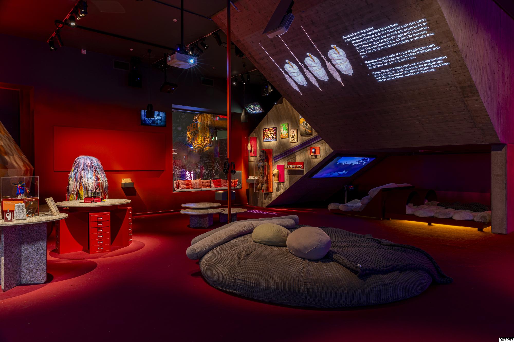 Interiörbilder från utställningen Existens på Världskulturmuseet, hösten 2025