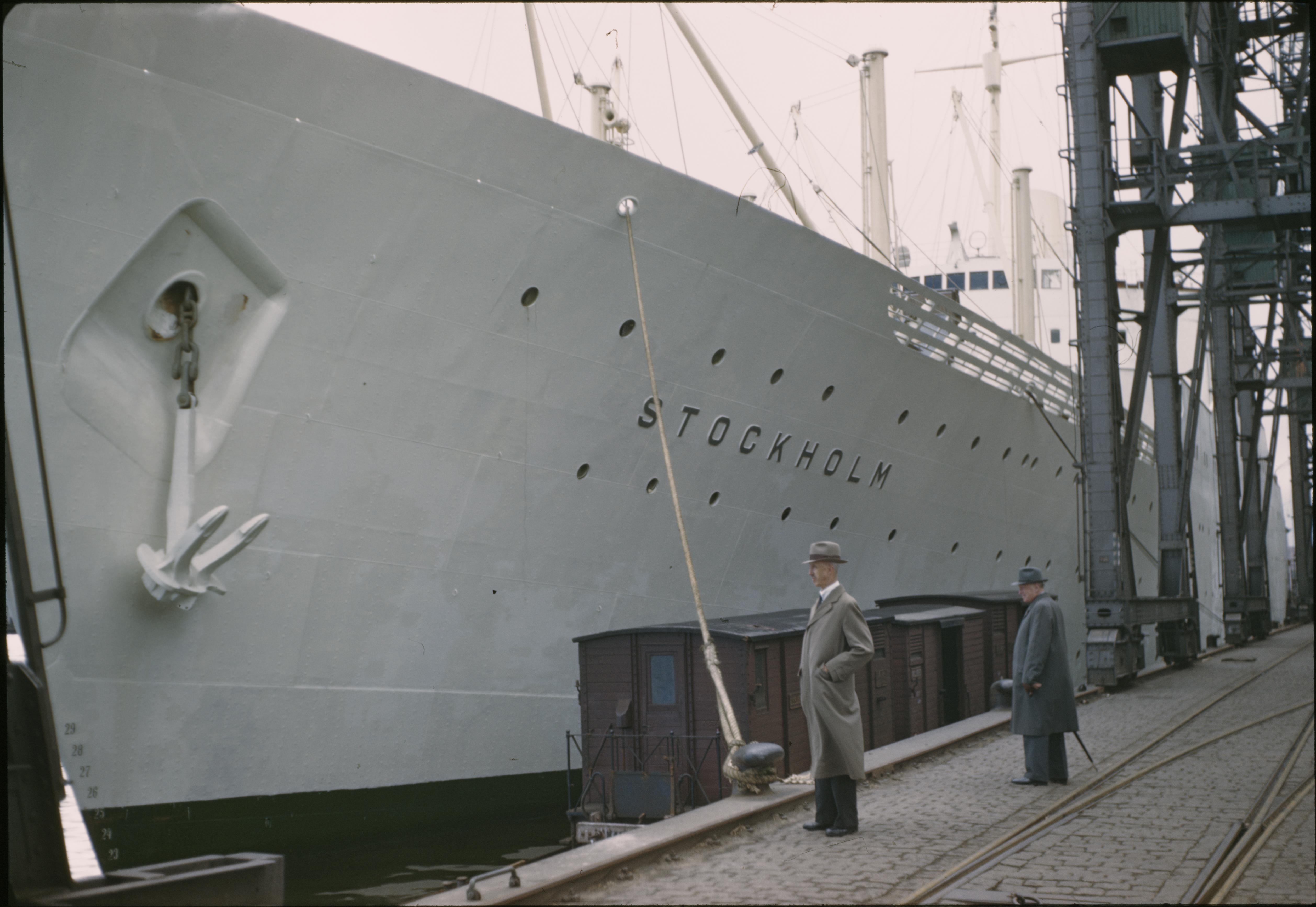 Svenska Amerika Liniens M/S Stockholm vid kaj. I bild: Thore Bruno.