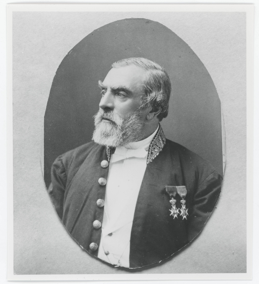 Porträtt på Carl Fredrik Christopher Ridderborg. Född 12 juli år 1826 på Vallerstad i Kärda socken. Död 8 februari år 1907 på Ribbingshov.