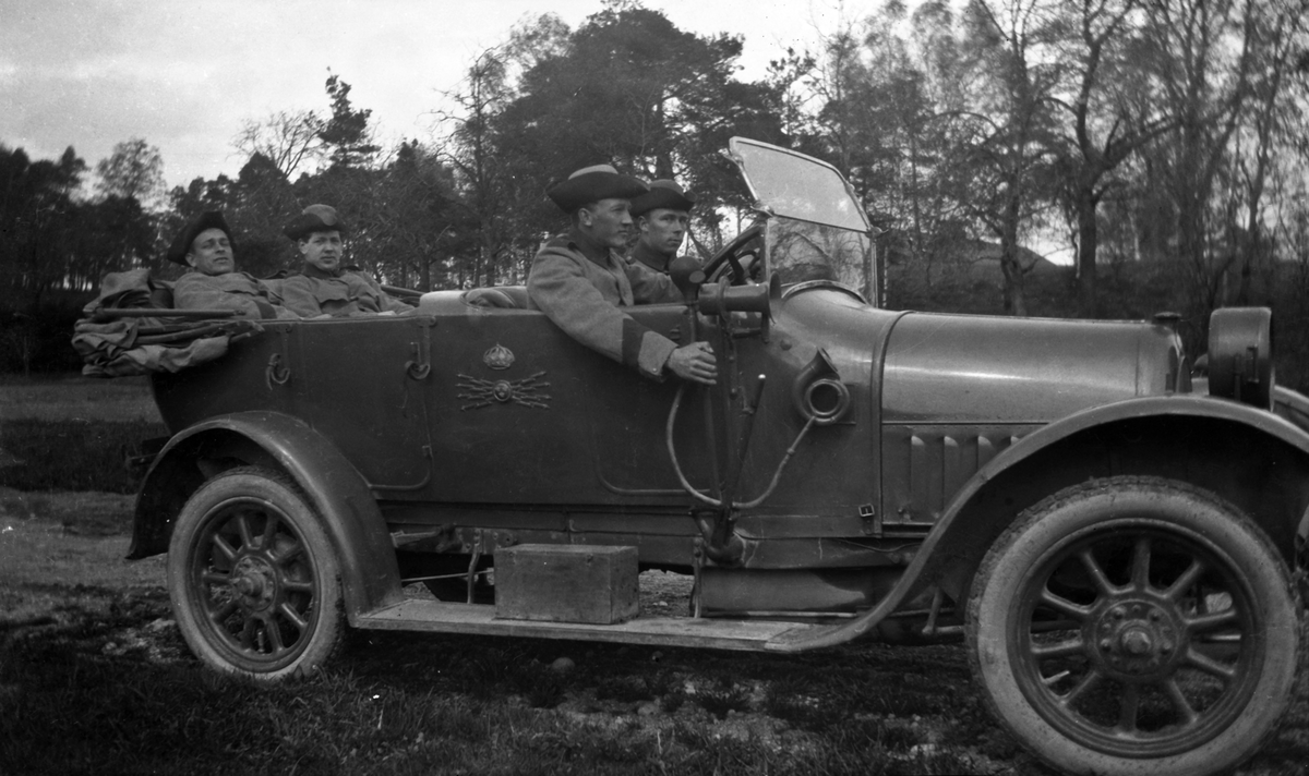 I en militärbil åker fyra militärklädda män.