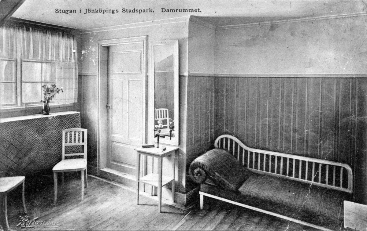 Stugan i Jönköpings stadspark, Damrummet. Vykort postat 1922-02-22.