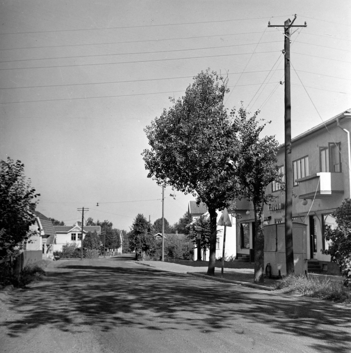 En del av nuvarande Centrumvägen i Tenhult. Till vänster finns nu Mickelsplan. Fotot taget mot norr.