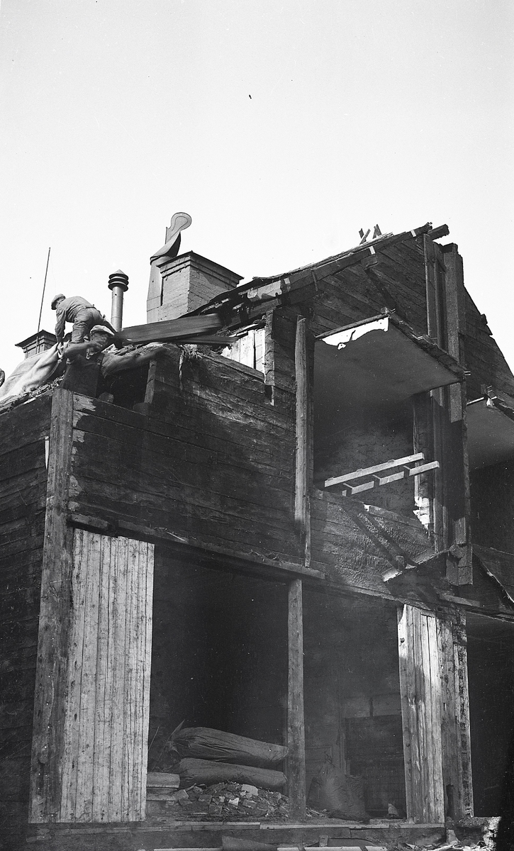Kvarteret Magnus Smek nr 4. Rivning av hus på innergården.