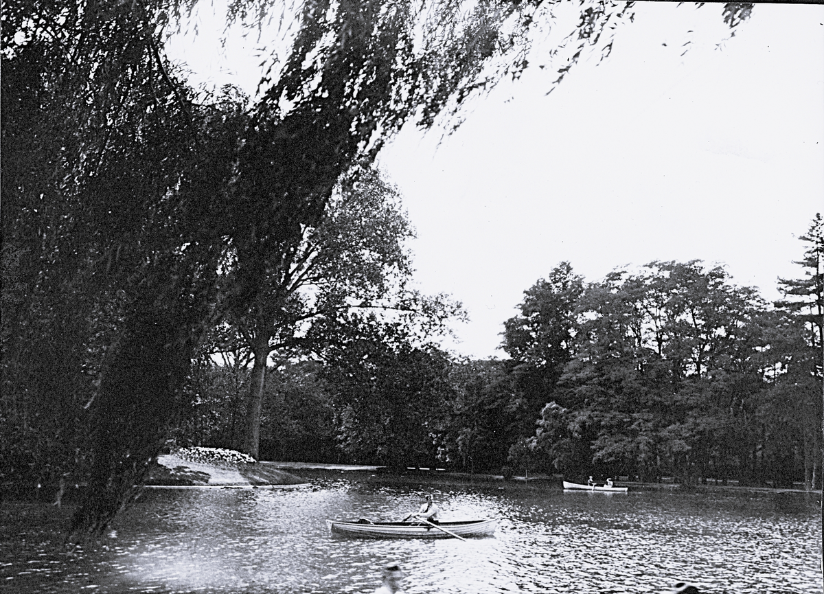 Foto av två båtar som är ute på floden och ror, Paris 1921.