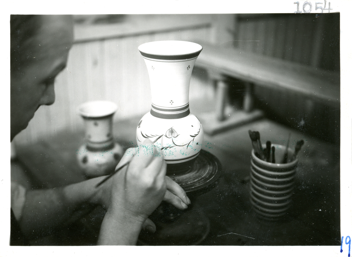 Titel: Bild från tillverkningen på Bo Fajans. Dekorering för hand.
