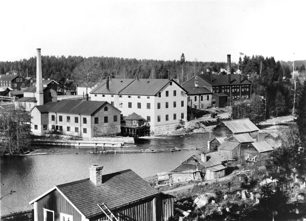 Forsså bruk AB. Vy från Hillensidan. Böleskäkten är den största byggnaden till höger på bilden. Foto före 1920.