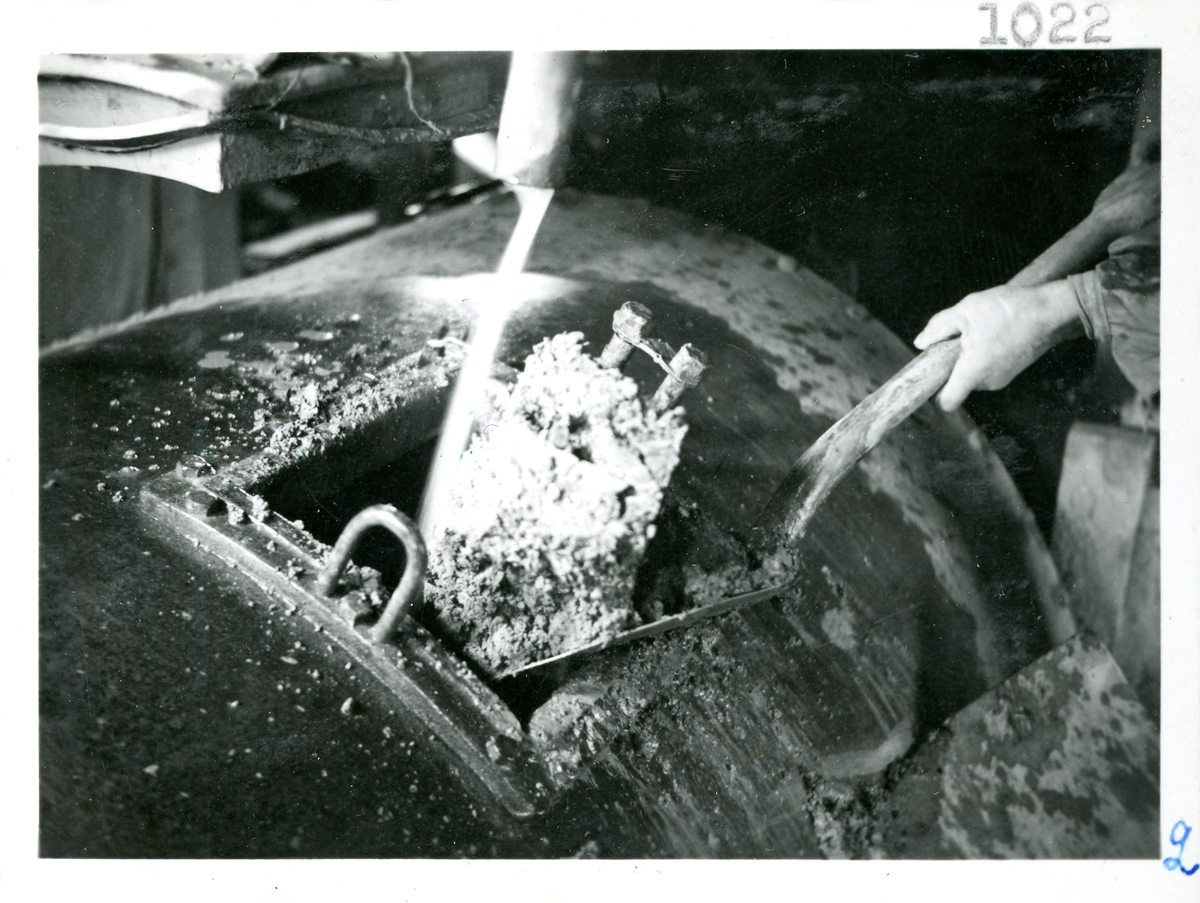 Bild från tillverkningen på Bo Fajans. Råleran förs in i kulkvarnen för malning.