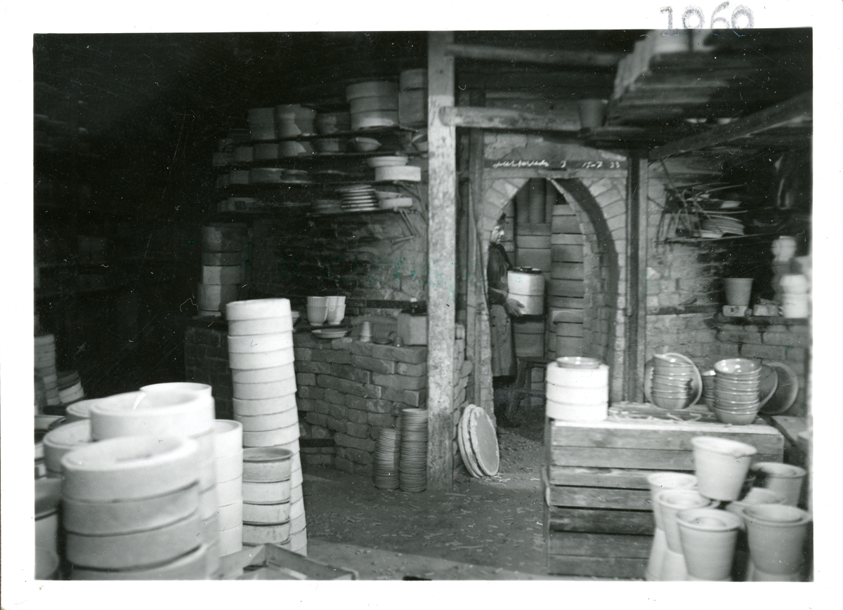 Bild från tillverkningen på Bo Fajans. Tömning av en rundugn efter bränning.