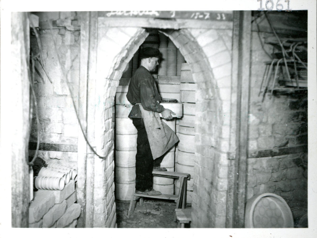Bild från tillverkningen på Bo Fajans. Packade kassetter inne i en rundugn.