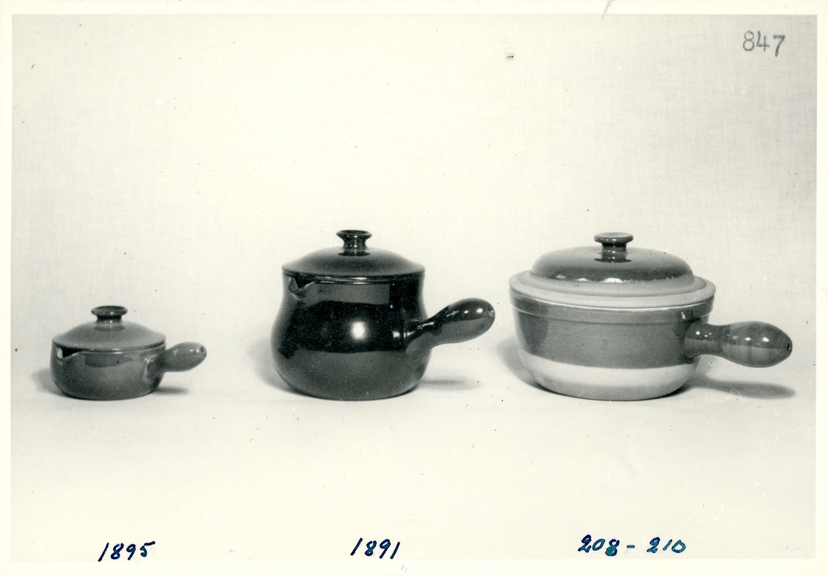 Grytor med lock och handtag från Bo Fajans, 1900-talets mitt.