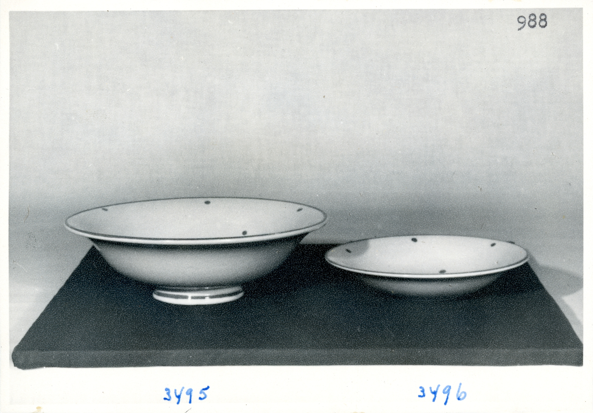 Skål och assiett från Bo Fajans, formgivare Eva Jancke-Björk, 1900-talets mitt.