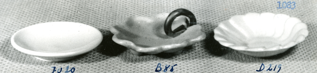 Tre askfat från Bo Fajans, formgivna av Eva Jancke-Björk och Ewald Dahlskog, 1900-talets mitt.