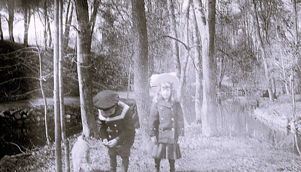 Titel: Foto av Harald och Ellen på upptäcksfärd i parken.