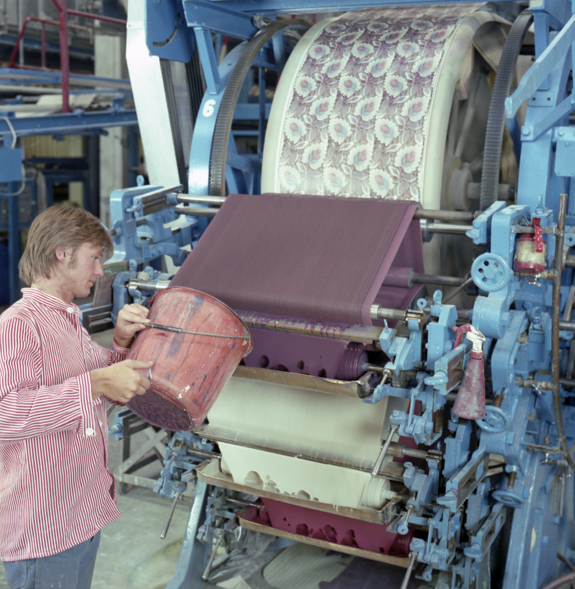 Arbete med tapettryck vid Durotapet AB. Påfyllning av färg.