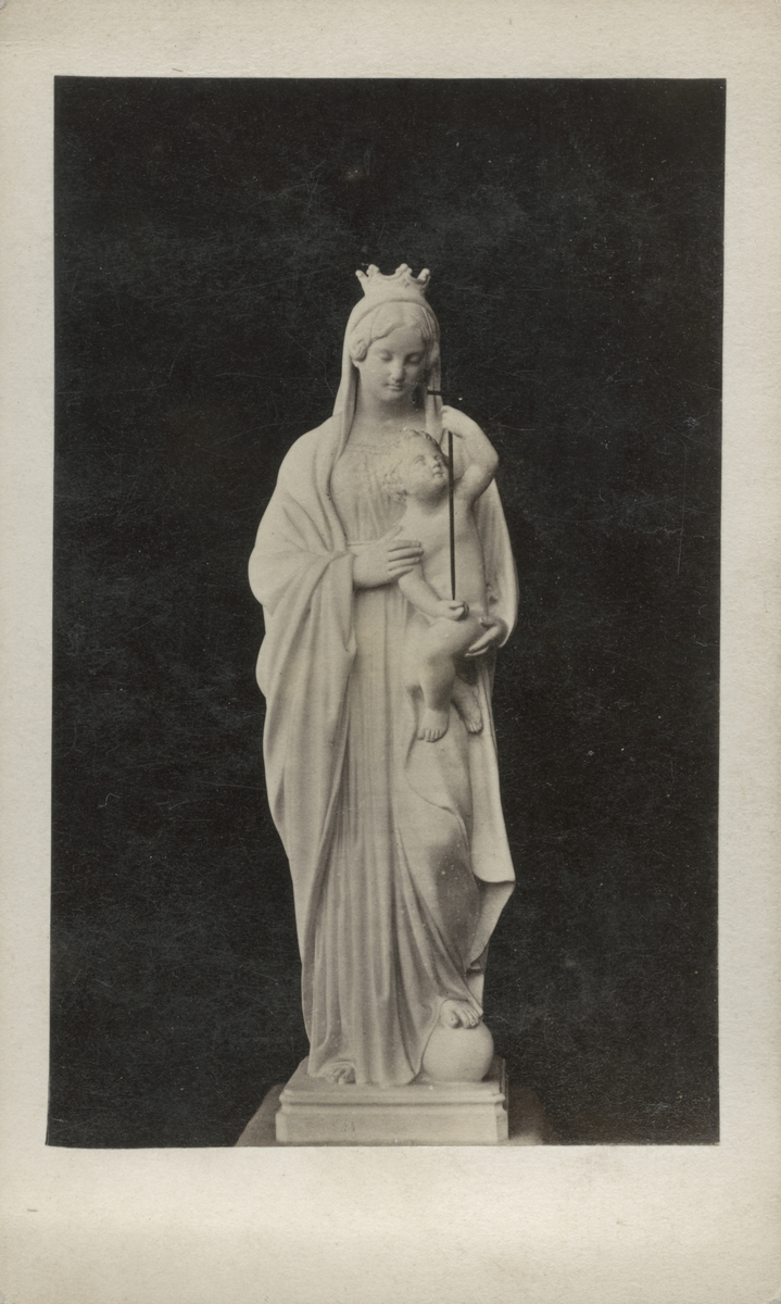 Bild av madonna med barn i vitt. Text baksida kort: 2146 Drake Madonna.