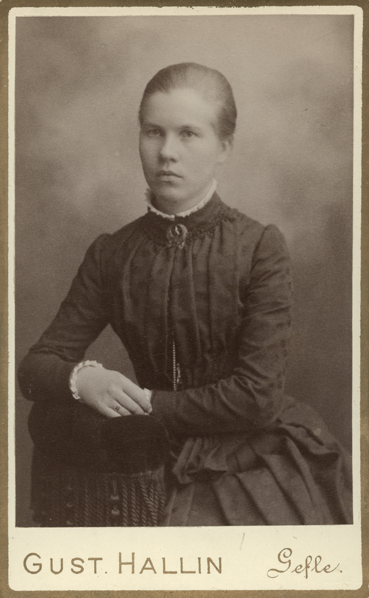 Porträtt av Ingeborg Brodin våren 1886 (enligt text baksida kort).