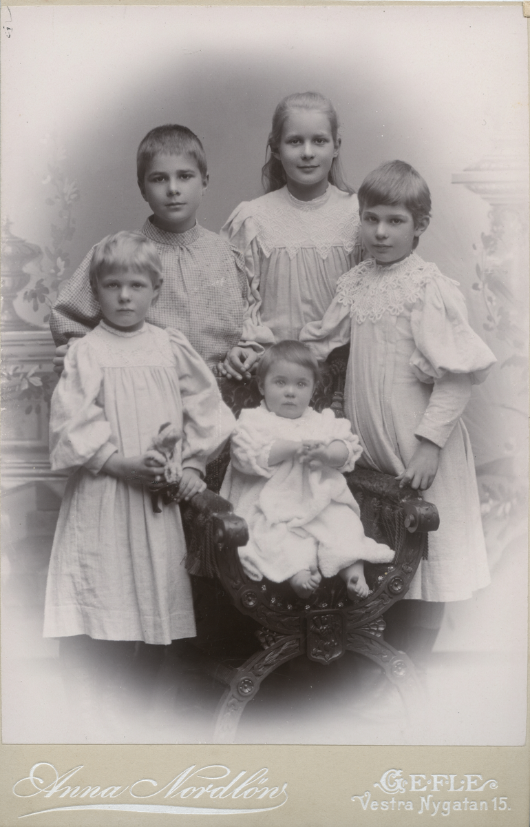 Titel: Porträtt av barnen Holmström, julen 1895.