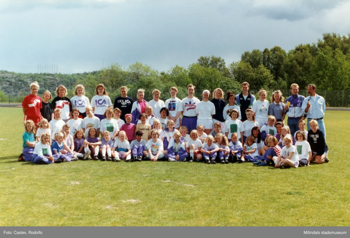 Grupporträtt av Jitexspelare under Jitexdagen på Krokslättsvallen i Mölndal i juli 1991.