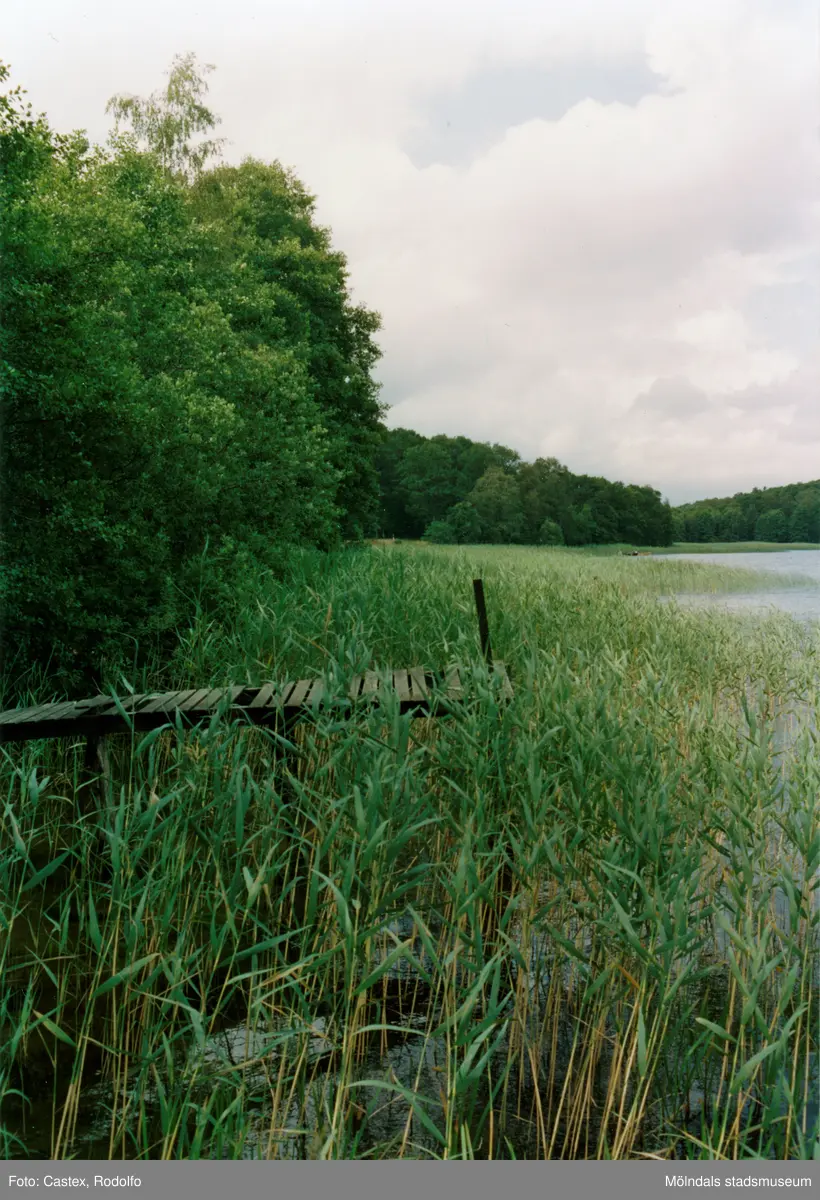 Naturområde med båtbrygga vid Stensjön i Mölndal, år 1994.