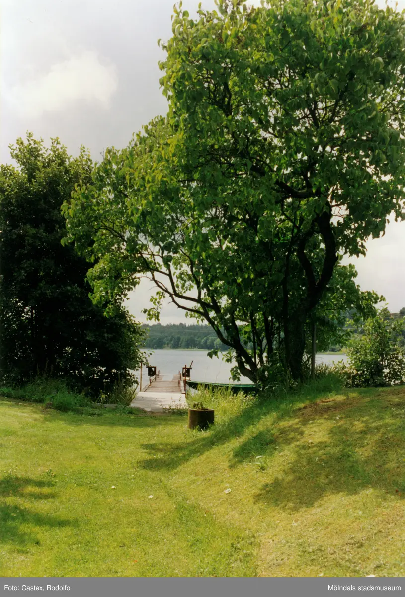 Naturområde med båtbrygga vid Stensjön i Mölndal, år 1994.