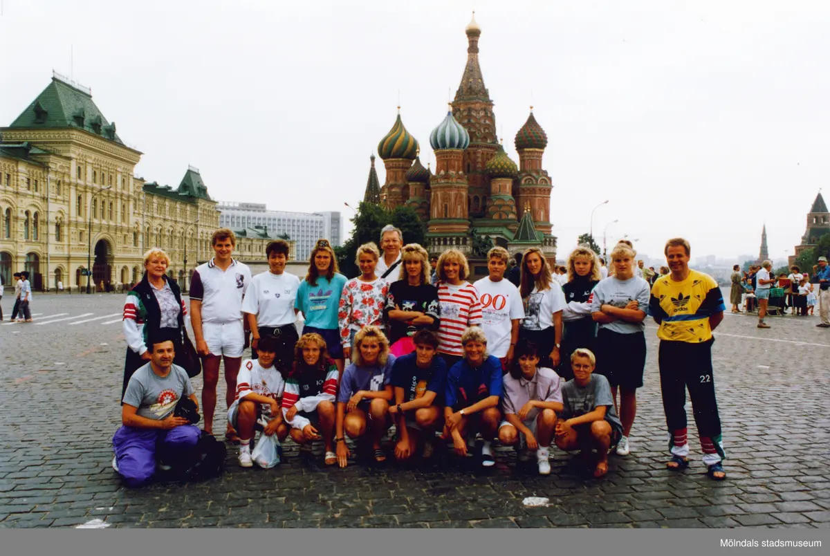 Lagbild av fotbollslaget Jitex BK på Röda torget i Moskva, okänt årtal. Rodolfo Castex ses i främre raden, längst till vänster.