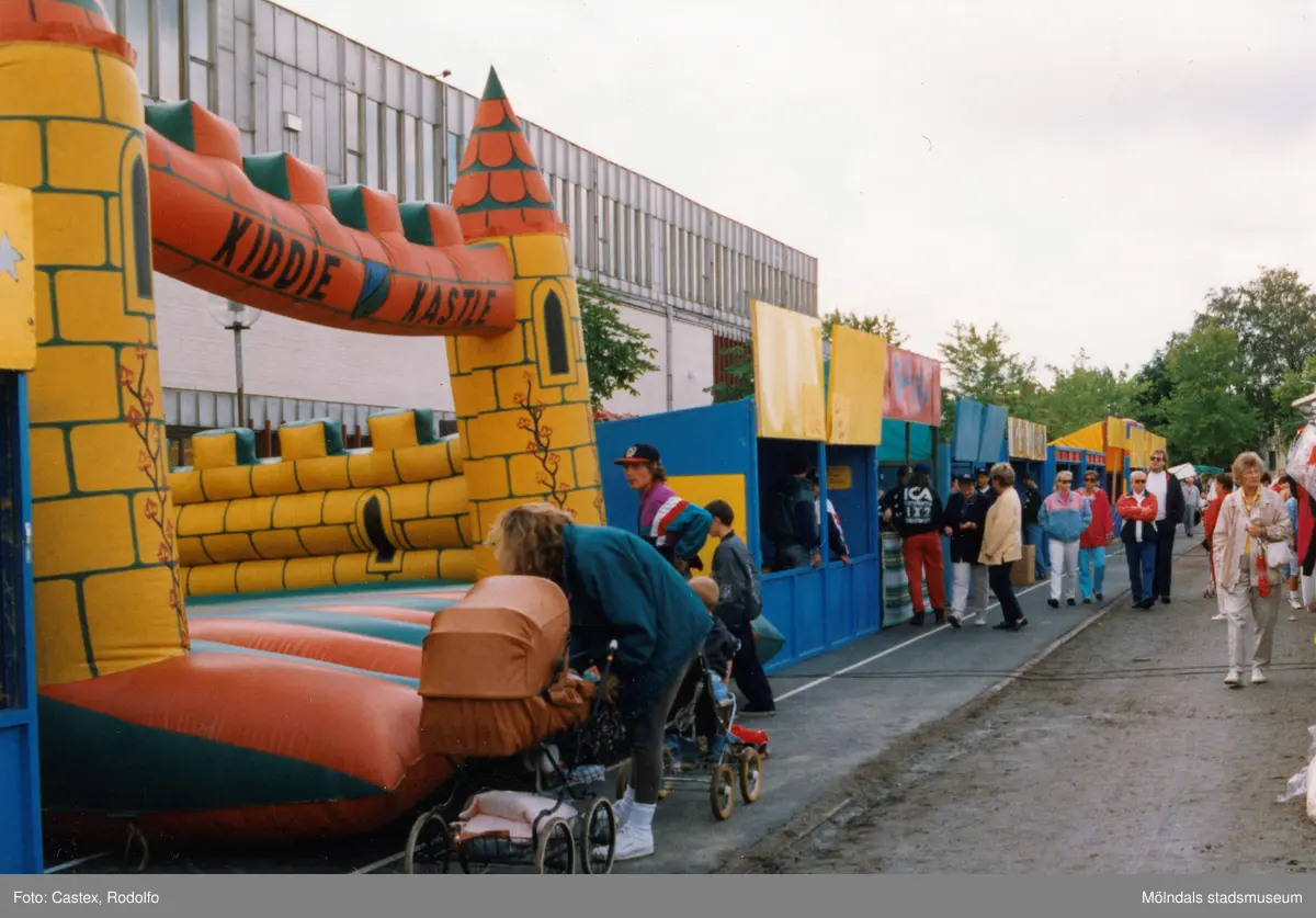 Knallemarknad på Frejaplan i Mölndal på 1990-talet. Idrottshuset/Aktiviteten till vänster.