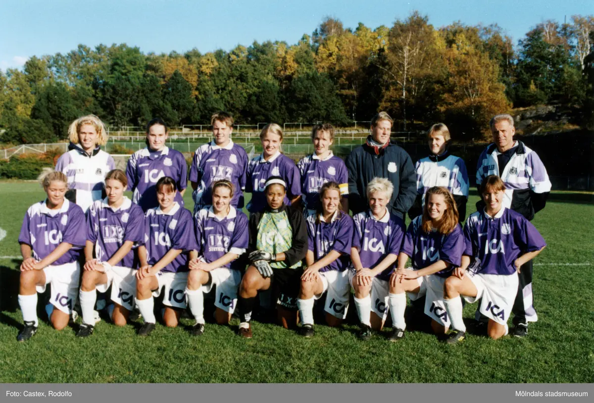 Lagbild av fotbollslaget Jitex BK efter en match mot Holmalunds IF på Kvarnbyvallen i Mölndal den 3 oktober 1998.
