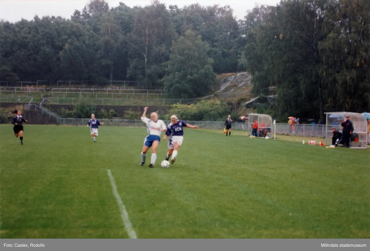 Fotbollslaget Jitex BK spelar match på Kvarnbyvallen i Mölndal, år 1998. Motståndarlag och matchresultat är okända.