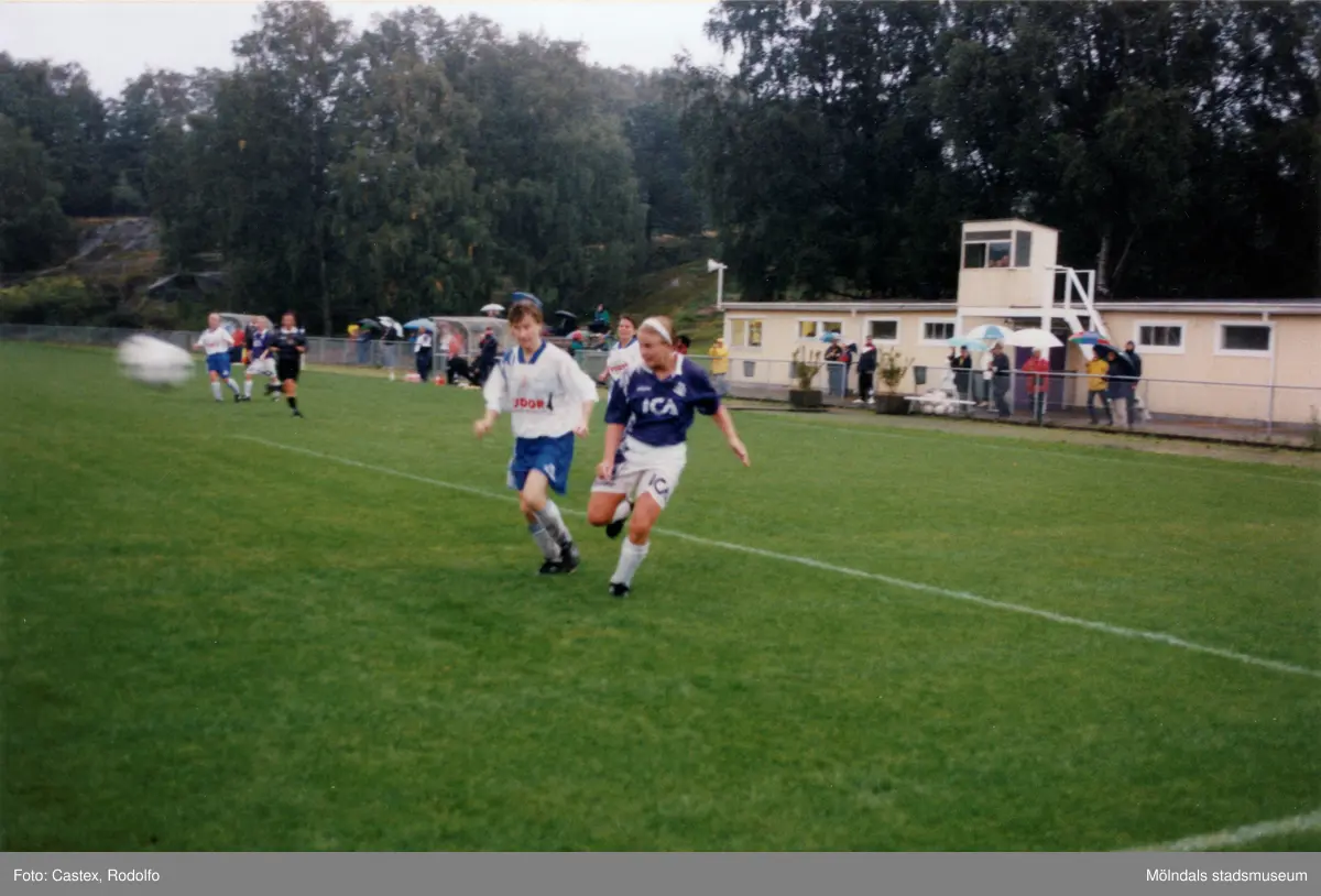 Fotbollslaget Jitex BK spelar match på Kvarnbyvallen i Mölndal, år 1998. Motståndarlag och matchresultat är okända.