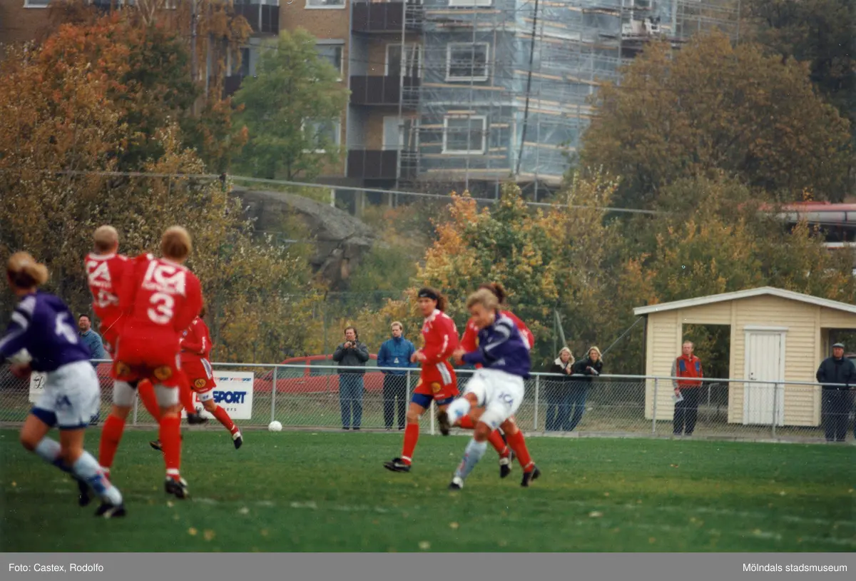 Fotbollslaget Jitex BK spelar match mot Älvsjö AIK på Kvarnbyvallen i Mölndal den 12 oktober 1996. Jitex förlorade matchen med 1-2.