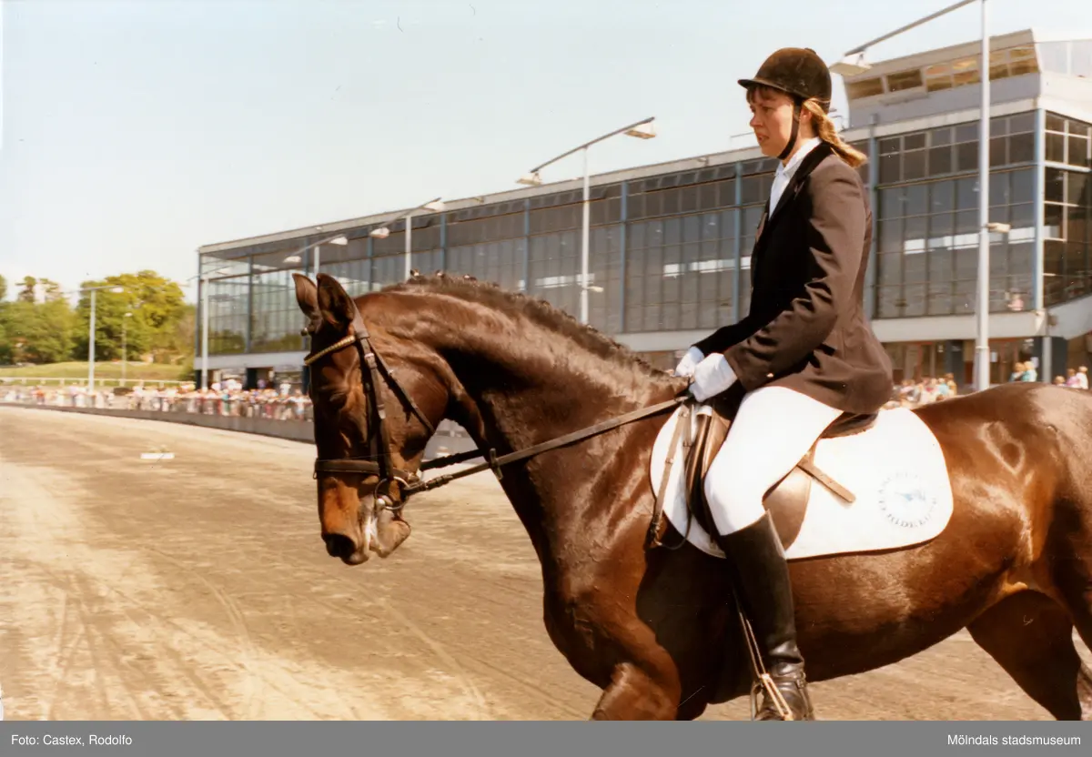 Dressyrtävling på Åbytravet i Mölndal. Fotografi taget på 1980-talet?