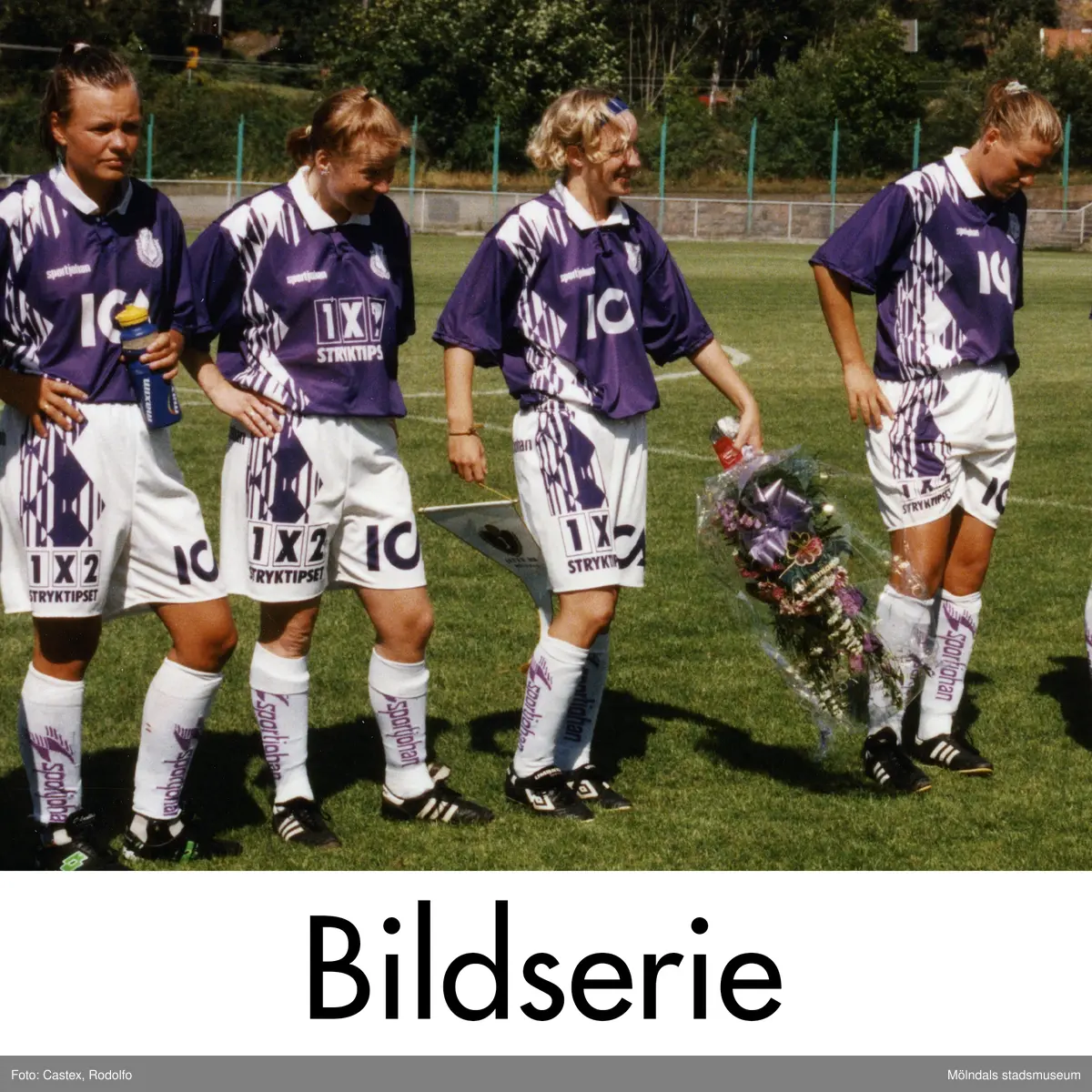 Serie om två fotografier som visar fotbollslaget Jitex BK med Victoria Svensson på Kvarnbyvallen i Mölndal, år 1997.