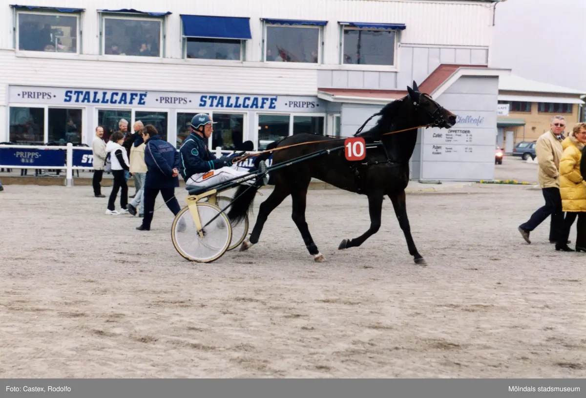 Ett travekipage vid Åbytravet i Åby, Mölndal, år 1998.