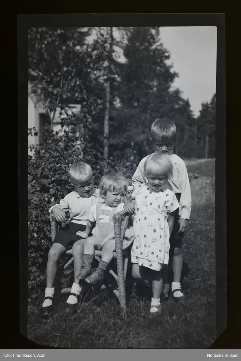 Porträtt av fyra barn, syskon.