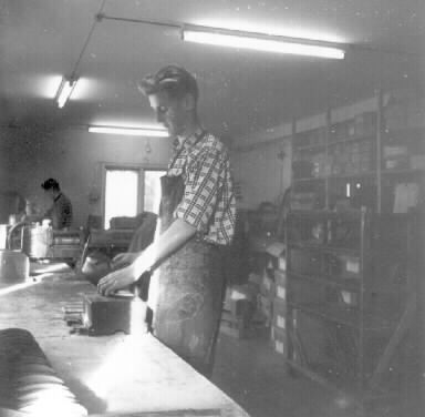 Skoarbetare hos SA Svenssons spikar gelänk (stålskena) som bygger upp hålfoten.