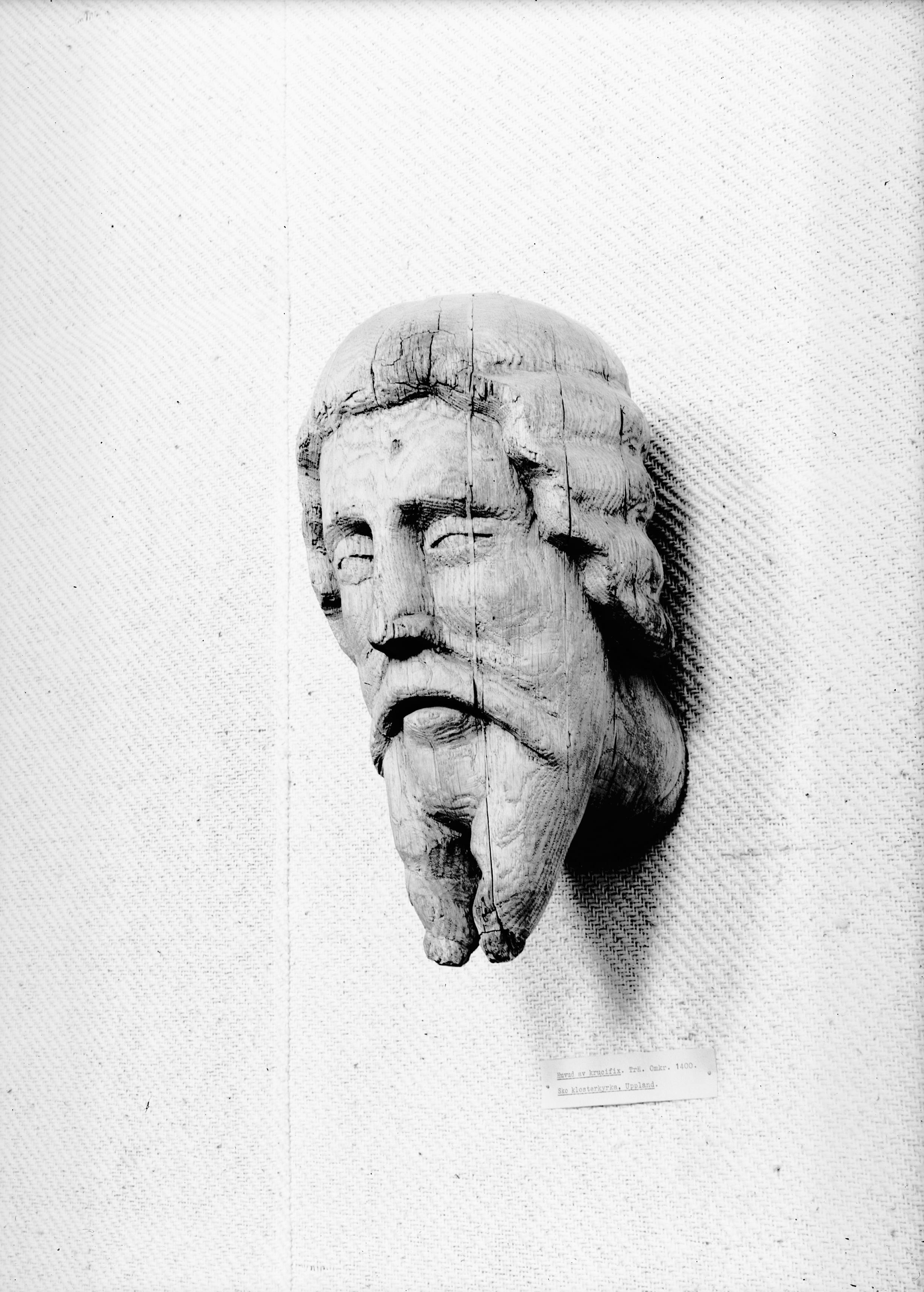 Skulptur, trä, Kristushuvud, 1300-talet.