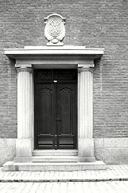 Entren till dåvarande Falkenbergs Sparbank. (korslista, kommunark.)