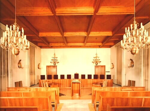 Tingssalen i tingshuset Hallands Mellersta Domsaga 1905-1972. (A.S.).