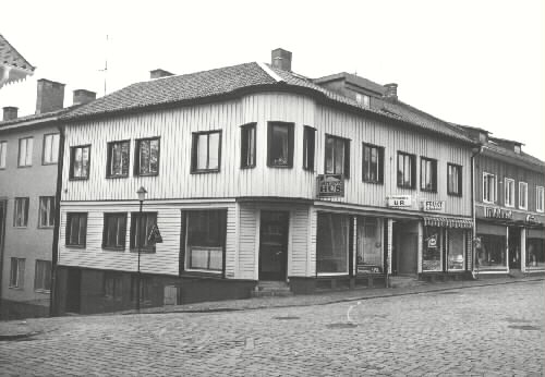 På affärsskyltarna kan man läsa, Persons Ur, Frukt Choklad, Modehuset Cetex, Götene Hus.