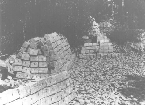 Upplag med huggen gatsten färdig för avhämtning.