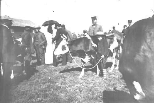 Till vänster ses en stallbyggnad från 1885.(C.E.) Utanför Adolf Jönssons. (A.S.)