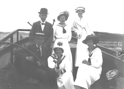 Text under bild på löst albumblad: ( På bladet fanns en lös lapp med namnet Hildur Andersson.) På motorbåtsutfärd till marsten.