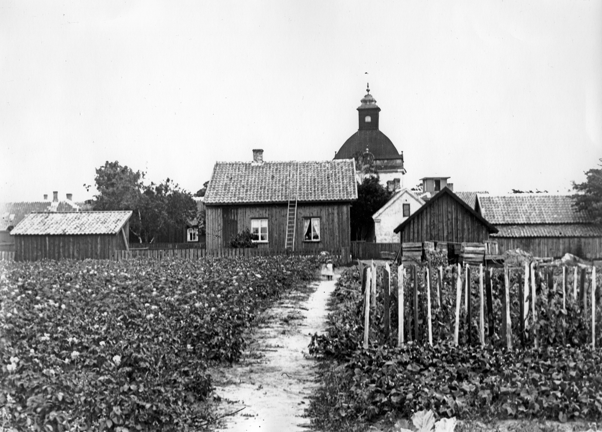 I bildens mitt stadens fattighus jämte uthus 1873-93. Tillbyggt 1894. Rivet 1916. (C.E.)